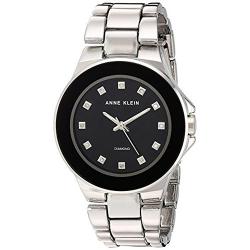 Anne Klein AK/2755BKSV Women’s Diamond-Accented Silver-Tone Bracelet Small Watch