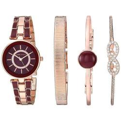 ANNE KLEIN AK/3286BYST WOMEN’S SWAROVSKI CRYSTAL ACCENTED ROSE GOLD-TONE BURGUNDY WATCH BRACELET SET